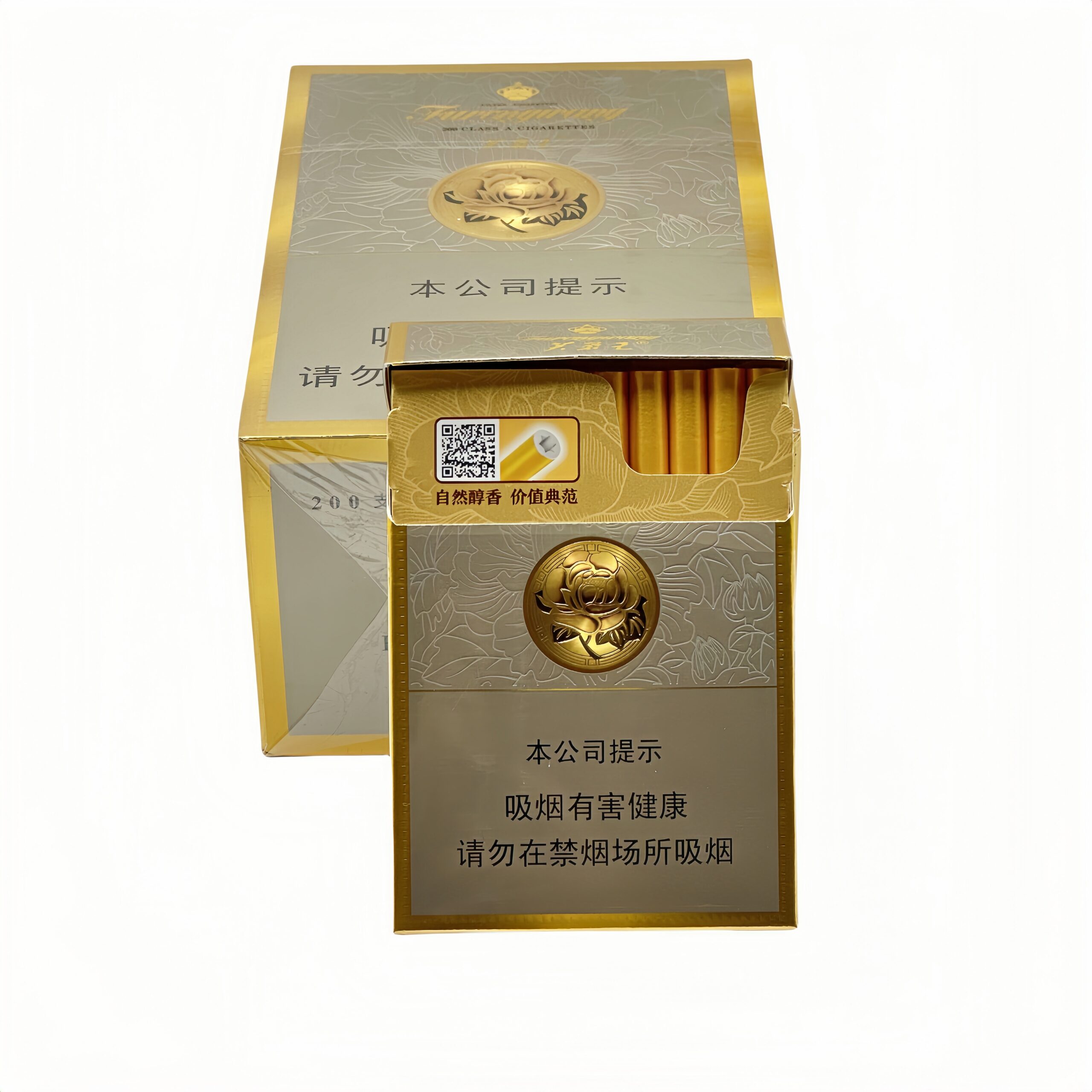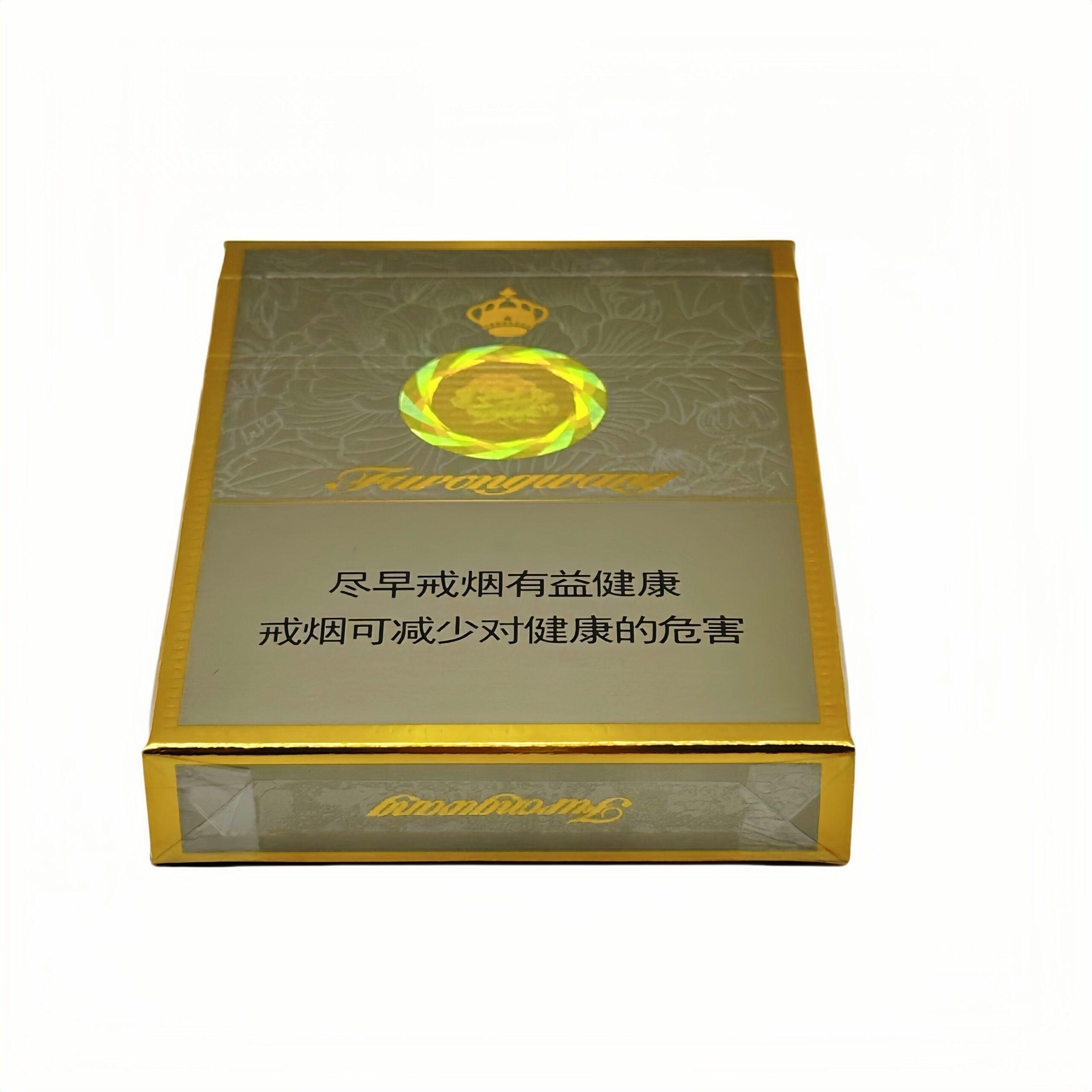 🎨 包装设计·经典灰金结局:外盒以哑光金为主色,浮雕芙蓉花图腾+灰色暗纹,前置芙蓉王“帝王金”基因。·防伪科技:内部全息伪防标,瞄准了王冠图案(致敬品牌“王者”主题)。·中支尺寸巧思:89mm烟支+25mm滤嘴,持烟更优雅,帅气的商务场景。