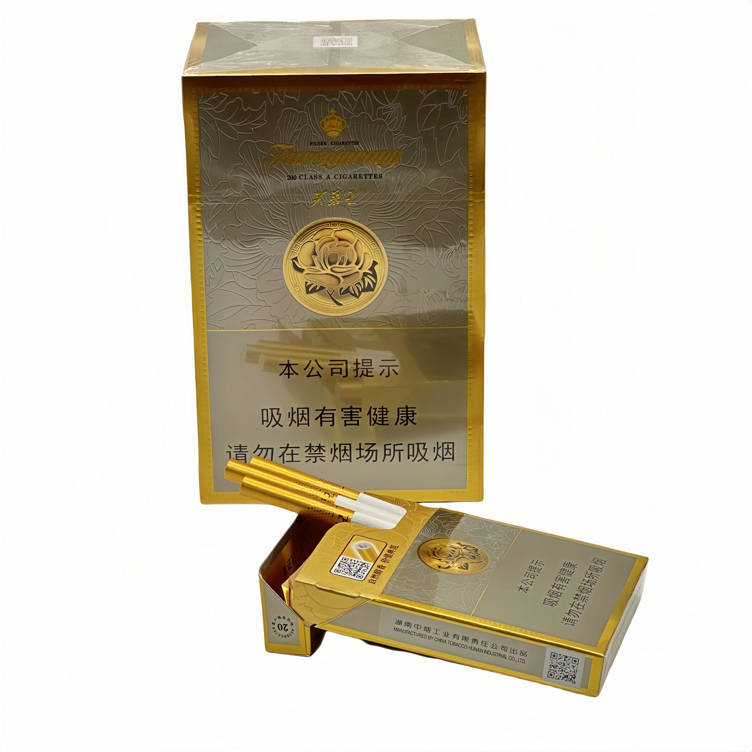 芙蓉王(硬中支)是湖南中烟出品的高档香烟,香气浓郁,口感淡雅醇正。烟支设计精致,长度适中,烟草稀疏,味道洁净。