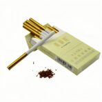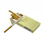 烟支采用细支设计,烟支纤细修长,长度常见90mm,滤嘴有精致花纹,和烟盒的设计风格相呼应,上面还有一些独特的标识。
